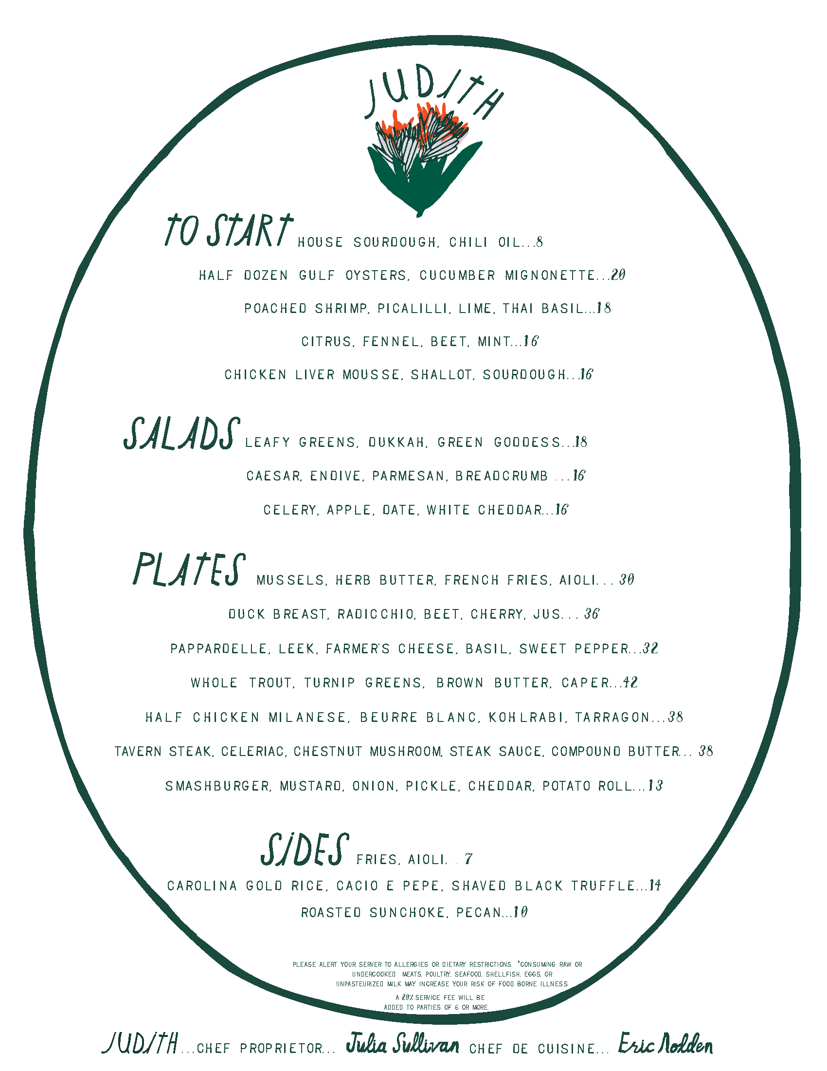 SAMPLE DINNER MENU