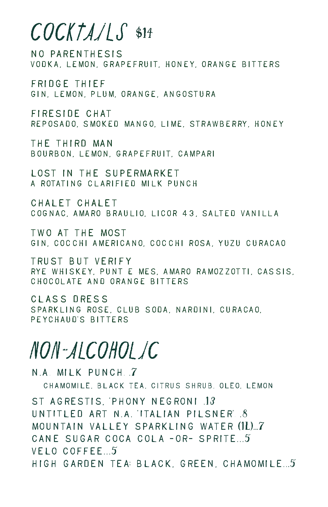 SAMPLE BEVERAGE MENU
